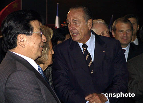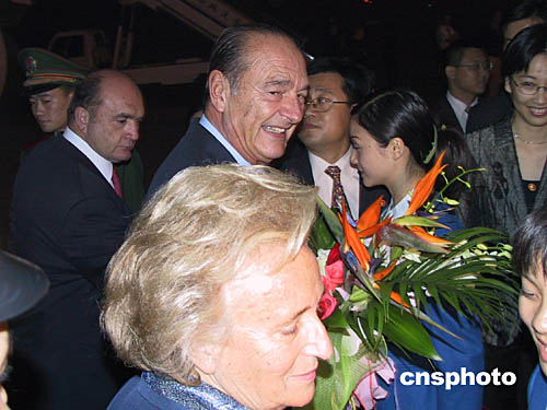 8日晚上,法國總統(tǒng)雅克·希拉克一行300多人乘坐的5架專機抵達成都。