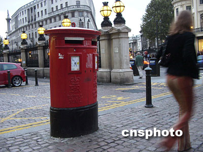 英國(guó)街頭的古老郵筒,在電子通訊業(yè)越來(lái)越發(fā)達(dá)的時(shí)代,仍然被不少市民習(xí)慣地使用著。余瑞冬 攝
