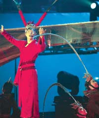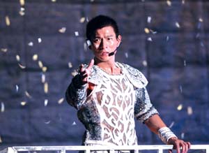 中新網(wǎng)10月10日電 據(jù)京華時報報道,昨晚,劉德華2004世界巡回演唱會北京站演出在歌迷的尖叫聲中開場。演唱會歌舞并進,穿插著港臺、傳統(tǒng)京劇、百老匯等幾種風格,使得整場演出更像大舞臺劇,F(xiàn)場,劉德華臺上換衣、袒胸露點、大膽挑逗女伴舞,不時對歌迷說一些貼心的話,將現(xiàn)場氣氛煽動得極為熱烈。