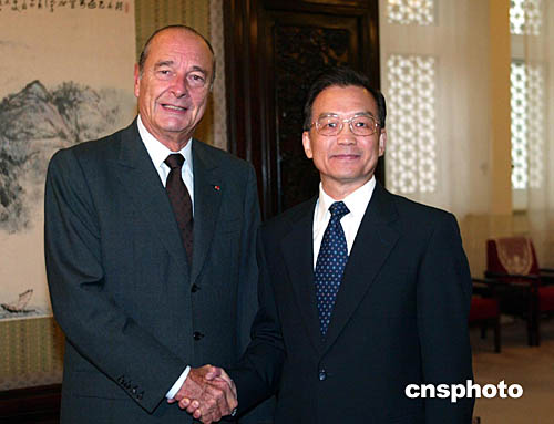 組圖:溫家寶會見法國總統(tǒng)希拉克