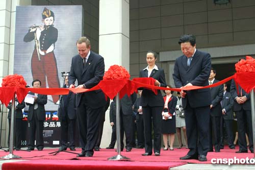 中新社北京十月十日電(記者李靜)“法國印象派珍品展”今天在中國美術館開幕,中國國家主席胡錦濤和在華訪問的法國總統(tǒng)希拉克,以及兩國元首的夫人一道觀看了畫展,法國奧賽博物館館長樂莫瓦納兼任全程解說。
