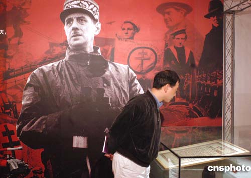 10月10日下午,由中國(guó)人民外交學(xué)會(huì)、中國(guó)對(duì)外文化交流協(xié)會(huì)和法國(guó)戴高樂基金會(huì)聯(lián)合主辦的《叱吒風(fēng)云的偉人——戴高樂生平展》,在北京中華世紀(jì)壇開幕。這一活動(dòng)是法蘭西共和國(guó)總統(tǒng)希拉克對(duì)中國(guó)進(jìn)行國(guó)事訪問之際,正式拉開帷幕的“中法文化年”——法國(guó)文化年的活動(dòng)之一。展覽主要通過圖片、視聽手段復(fù)原戴高樂生前的生活和工作場(chǎng)景,展示戴高樂將軍的一生和他為法國(guó)所做的貢獻(xiàn)。作者:鄒憲
