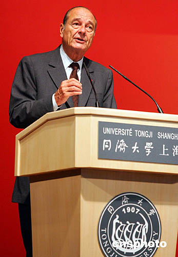 受中國國家主席胡錦濤的邀請,法國總統(tǒng)希拉克八日起對中國進(jìn)行為期五天的國事訪問。在鄧小平的家鄉(xiāng)欣賞了絢爛的民族舞蹈、神奇的川劇變臉;在杜甫草堂與詩圣進(jìn)行了跨越時(shí)空的交流;在北京與中國最高層領(lǐng)導(dǎo)人舉行了親切會(huì)晤,希拉克又在上海出席了中法中心的奠基儀式,并做了為時(shí)半個(gè)鐘頭的激情演講。