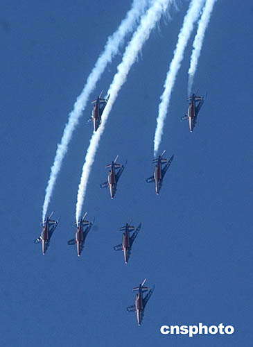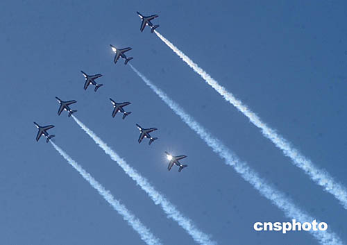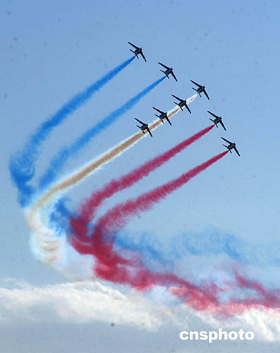 10月11日下午,法蘭西巡邏兵特技飛行表演在北京南苑機場舉行,成為中法文化年眾多活動中的一大亮點。中新社記者:武仲林