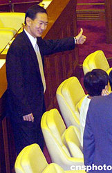 香港行政長官董建華10月12日宣布委任陳智思為行政會議成員。董建華贊揚陳智思是代表保險界的立法會議員,全力投入工作,在業(yè)界有很多建樹,并積極參與福利與公共服務(wù)。圖為陳智思議員日前出席立法會首次會議。作者:洪少葵