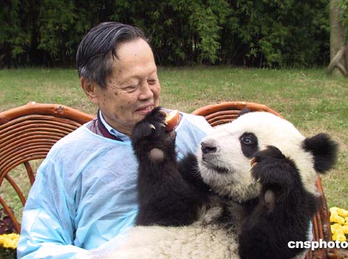 10月14日上午,世界著名物理學(xué)家、諾貝爾獎獲得者楊振寧抵成都大熊貓繁育研究基地參觀,并與憨態(tài)可掬的大熊貓合影留念。作者:張華