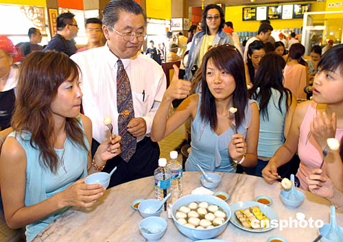 圖為佳麗們在馬六甲古城雞粒飯餐廳品嘗美食。