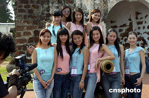 參加鳳凰衛(wèi)視舉辦的“2004中華小姐環(huán)球大賽”的佳麗程婉茹,10月14日在馬來西亞展開親善及觀光活動(dòng)時(shí)親近大蟒蛇毫無懼色。