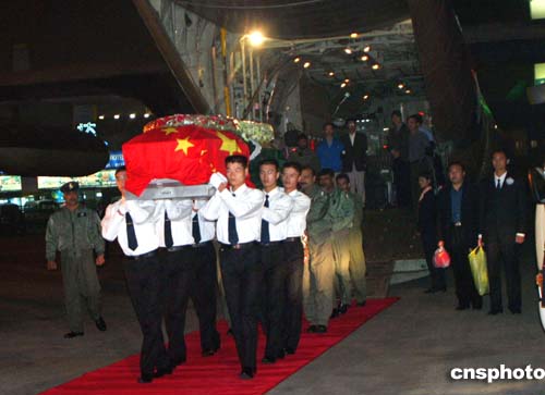 中新社濟南十月十六日電 (記者 王魯平 胡洪林)在巴基斯坦人質(zhì)綁架事件中遇難的中國工程師王鵬遺體,今晚八點四十五分由巴基斯坦的專機運回,抵達山東省濟南國際機場,中國外交部、商務部、山東省人民政府等有關部門的官員在濟南機場舉行莊嚴的靈柩迎接儀式。
