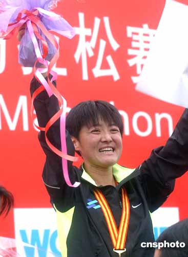 中新社北京十月十七日電(記者沈晨)雅典奧運(yùn)會折戟后急欲用成績來證明自己的中國中長跑名將孫英杰今日終于重拾信心,她在今天上午舉行的二00四年“全日空”北京國際馬拉松賽女子組中,以二小時二十四分十一秒的成績成功衛(wèi)冕,證明自己仍是中國女子中長跑項目上的頭號人物。