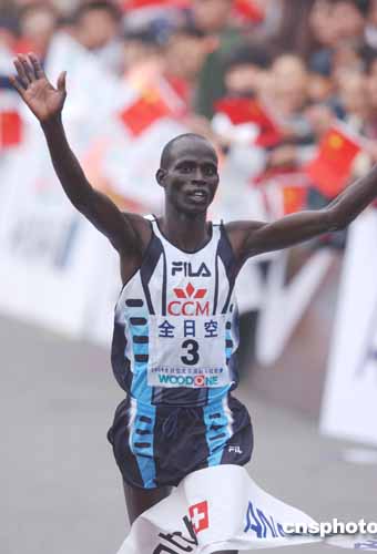 肯尼亞名將莫伊本以2小時10分34秒的成績,奪得北京馬拉松男子組冠軍。作者:武仲林