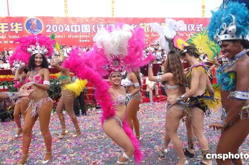 中新社江門十月十七日電(記者邢利宇)今天上午,彩旗、彩球、花車、巡游表演隊把廣東江門市東湖廣場裝扮一新,來自世界各地的華僑華人、港澳同胞及內(nèi)地各界嘉賓兩千多人歡聚于此,“中國(江門)僑鄉(xiāng)華人嘉年華暨二OO四中國(江門)僑鄉(xiāng)旅游節(jié)”在熱烈的氣氛中隆重開幕。