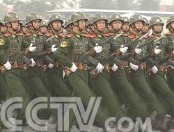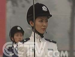 團(tuán)體操剛剛演練完,他們馬上打散隊(duì)形,用倒功組成了“55、盾牌和長城”圖案,向國慶55周年和公安部建部55周年獻(xiàn)禮致敬。