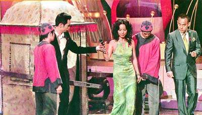 日前,鄧萃雯、李克勤、陳慧琳、容祖兒、梁詠琪及許志安等出席了《愛(ài)之關(guān)懷愛(ài)之夜》。當(dāng)晚,鄧萃雯除了坐大轎子出場(chǎng)外,更與陳豪及林保怡打頭陣合唱。當(dāng)晚的節(jié)目是宣揚(yáng)防治愛(ài)滋病訊息的晚會(huì),雖然與勾心斗角的《金》劇屬兩碼子事,但《金》劇最近掀起熱潮,無(wú)線當(dāng)然把握機(jī)會(huì)將有關(guān)角色安排出場(chǎng),晚會(huì)更以《金》劇的片段作為序幕,鄧萃雯、林保怡和陳豪以“金枝欲孽頌愛(ài)心”名義,合唱《愛(ài)的音訊》。三人中,除了林保怡是歌手出身,鄧萃雯與陳豪都是全職演員,這次獻(xiàn)唱,鄧萃雯表現(xiàn)淡定,事后她解釋:“這次是錄音對(duì)口形,所以不是很緊張。(擊敗眾歌手打頭陣,會(huì)不會(huì)覺(jué)得自己的風(fēng)頭很勁?)這是因?yàn)椤督稹穭〉泥孱^而已!”