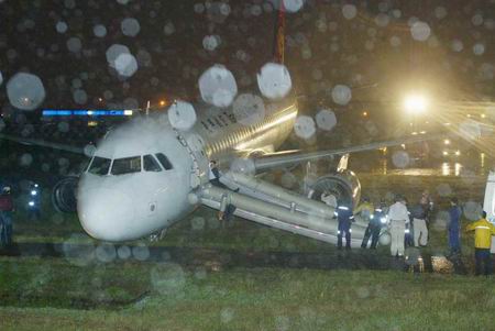 這架復興事故飛機機上一百名旅客及六名機組員都平安無事,通過緊急充氣舷梯從前艙逐一跳下。但松山機場從昨天晚上八時零四分以后,就被迫關(guān)場,工作人員徹夜搶修。