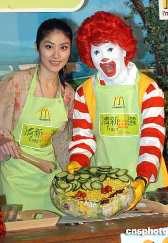 歌星陳慧琳10月19日在香港出席麥當勞推出全新“清新滋選”美食系列揭幕禮,并即場示范制作沙律義賣競投,結(jié)果以壹萬元售出,所得善款捐贈陳慧琳兒童助學基金。作者:鄧慶樂