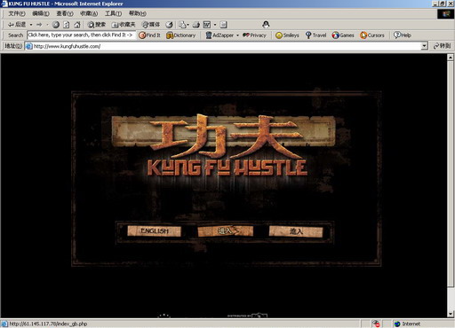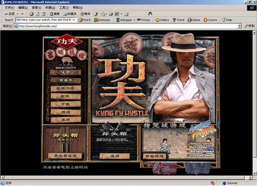 昨日,記者提前進(jìn)入網(wǎng)站,看到了非常搞笑的預(yù)告片片斷———周星馳在豬籠城寨被拿蔥的大嬸痛打一拳!豆Ψ颉酚⑽拿麨椤禟ung Fu Hustle》,官方網(wǎng)站為,網(wǎng)站使用三種文字:英語、中文簡體和中文繁體。網(wǎng)站上除了有電影簡介、演員檔案等內(nèi)容外,還有兩個最新的FLASH游戲“豬籠城寨大亂”和“斧頭幫暴亂”,登記為斧頭幫會員的網(wǎng)友可比賽積分,此后還會加入兩個新游戲“冰淇淋狂熱”和“功夫戰(zhàn)士”。