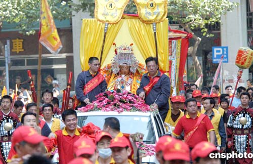 湄洲媽祖金身首度巡安澳門 上千名信徒恭迎(圖)