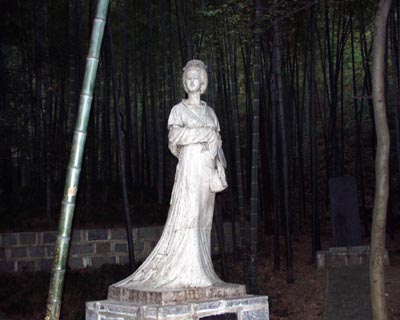 在導(dǎo)游引領(lǐng)下,記者們?cè)谥窳稚钐幙吹搅颂瞥鋭t天的孫女玉真公主的雕像。玉真公主當(dāng)年曾鐘情于李白,但終因門戶觀念阻隔而分離。傳稱,玉真公主后曾尋李白于敬亭山而不遇,終在此削發(fā)為尼,數(shù)年后郁郁而終。此后,李白曾重游敬亭山,感傷不已。
