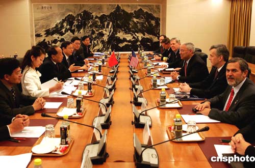 中新網(wǎng)北京十月二十五日電(記者李靜)中國外交部長李肇星二十五日上午在外交部與美國國務(wù)卿鮑威爾舉行會談,雙方就中美關(guān)系以及其它共同關(guān)心的問題交換了意見。