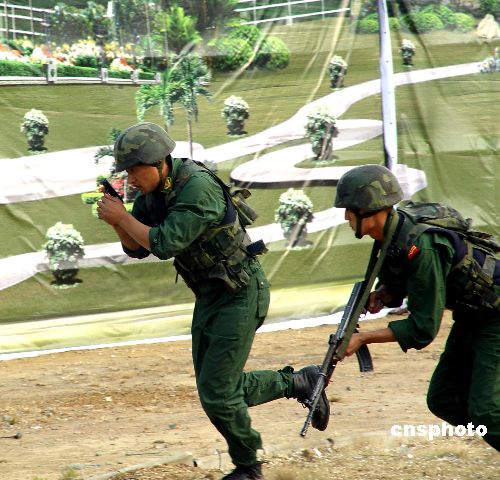 2004年10月25日,江蘇武警某部“反恐”分隊舉行“反恐”模擬演練,努力提高官兵在各種條件下處置突發(fā)事件能力。作者:王耀武