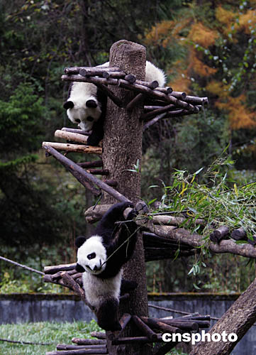 組圖:臥龍秋林晚大熊貓寶寶樂逍遙