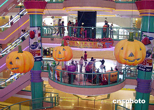 圖:香港商場南瓜點(diǎn)綴迎萬圣節(jié)