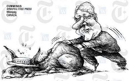 10月25日,美國(guó)前總統(tǒng)比爾·克林頓剛做完心臟手術(shù)不久,就以飽滿(mǎn)的熱情出現(xiàn)在賓夕法尼亞州費(fèi)城的民主黨競(jìng)選集會(huì)上?肆诸D一臉笑容的為本黨候選人克里助威,并嚴(yán)厲指責(zé)布什犯下一系列錯(cuò)誤。