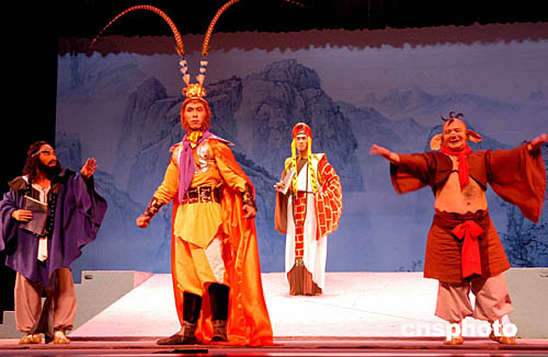 十月二十九日晚,廣東粵劇團(tuán)、廣州紅豆粵劇團(tuán)聯(lián)合在廣州首演多媒體青春粵劇《夢(mèng)驚西游》,對(duì)唐僧師徒四人進(jìn)行了一個(gè)人性化地全新演繹。作者:劉衛(wèi)勇