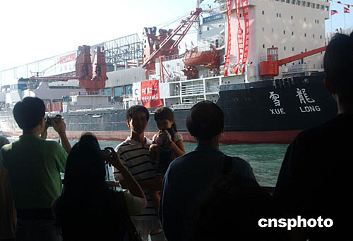| 中國破冰船“雪龍?zhí)枴钡诌_香港補給并停泊在尖沙咀海運碼頭,這艘唯一能在極地航行的破冰船,冀三日的訪港活動,擴闊港人視野!把?zhí)枴睂⒊掏蠘O挑戰(zhàn)南極的最高點,這將是中國人首次深入南極內(nèi)陸一千三百公里,創(chuàng)造中國南極考察史新紀錄。圖為10月30日大批香港市民前來圍觀“雪龍?zhí)枴逼票。作?尚金生