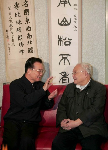 中新網(wǎng)11月2日電 據(jù)新華網(wǎng)報(bào)道,在中國科學(xué)院成立55周年前夕,中共中央政治局常委、國務(wù)院總理溫家寶10月31日上午專程來到中關(guān)村著名科學(xué)家吳文俊、劉東生、李國杰家中,看望三位科學(xué)家,與他們促膝談心,討論中國科技發(fā)展問題。