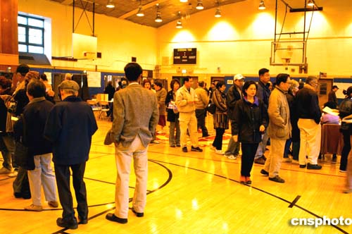 美東時(shí)間十一月二日清晨七點(diǎn)多鐘,在紐約市亞裔移民聚居區(qū)法拉盛的投票站內(nèi),已有五、六十位選民排隊(duì)等候投票。作者:龔文謨