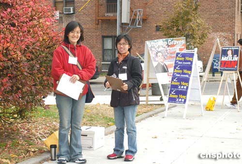 今年美國(guó)大選競(jìng)爭(zhēng)激烈,競(jìng)選團(tuán)隊(duì)也毫不松勁。美東時(shí)間十一月二日大選日清晨,紐約市亞裔移民聚居區(qū)法拉盛的投票站外,助選人員照常“站崗”,企圖在最后時(shí)刻“拉攏”選民投票給自己助選的一方。作者:龔文謨