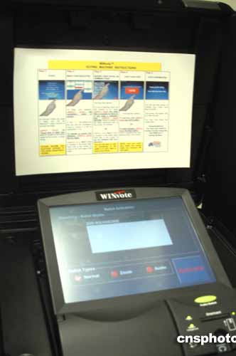美國(guó)大選的電腦觸摸式投票機(jī),據(jù)說(shuō)可免去上次打孔投票機(jī)的紛爭(zhēng)。作者:余東暉
