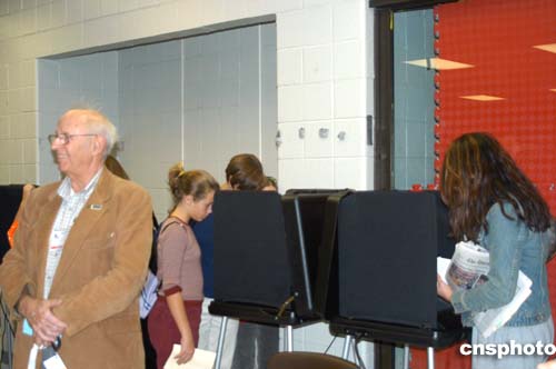 美國(guó)選民正在電腦投票機(jī)前做出自己的選擇。作者:余東暉