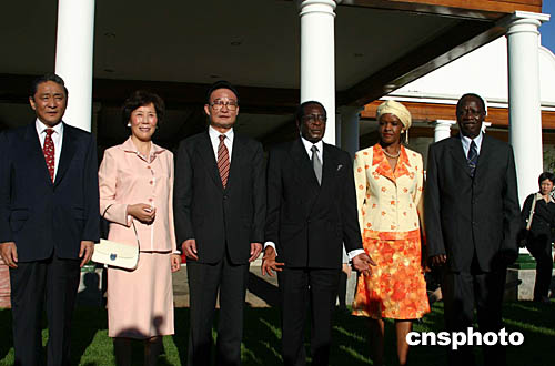 穆加貝表示感謝,并請吳邦國轉(zhuǎn)達(dá)他對胡錦濤和江澤民的親切問候。