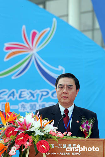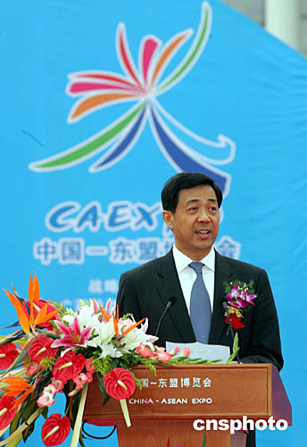 圖為中國商務(wù)部長薄熙來在中國-東盟博覽會開幕式上致辭。