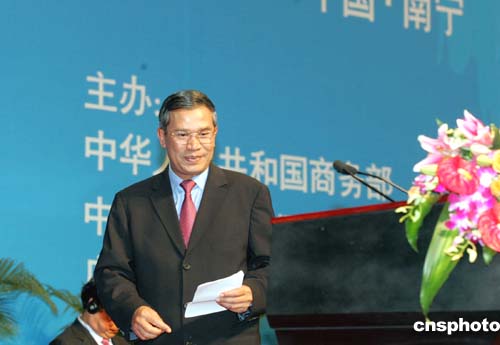 十一月三日,以“促進互利合作,謀求共同發(fā)展”為主題的首屆中國—東盟商務與投資峰會在廣西南寧開幕,中國國務院副總理吳儀、柬埔寨首相洪森、老撾總理本揚·沃拉吉、緬甸總理梭溫、泰國副總理披尼·差魯頌巴、越南副總理范學謙等出席峰會開幕式并就本國政策、區(qū)域發(fā)展等問題做主題演講。圖為柬埔寨首相洪森出席中國—東盟商務與投資峰會。作者:武仲林