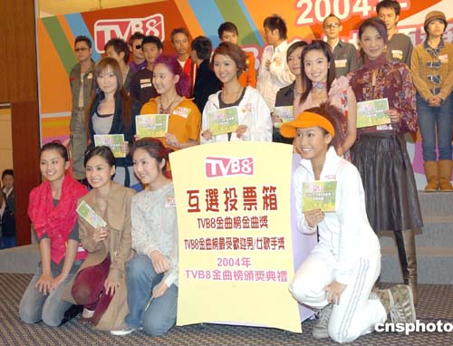 《2004年TVB8金曲榜頒獎典禮》11月3日在香港舉行記者會,出席活動的女歌星參與互選投票。作者:鄧慶樂