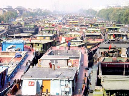 在江蘇常州東郊三號橋至九號橋的河段,短短3公里長的運(yùn)河,竟來來往往堵了600多條船。岸邊一位姓王的船員說,他們的船是去無錫送石材的,在這已經(jīng)堵了整整兩天,已經(jīng)延誤工期了。盡管目前船上的水和生活用品還勉強(qiáng)可以維持,但隨著后面的船源源不斷地駛來,滯留的船越聚越多,還不知道要等多久呢!
