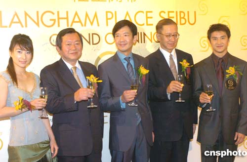 香港西武旺角朗豪坊店5日開幕﹐奧運(yùn)會(huì)金牌得主郭晶晶﹑田亮作為嘉賓到場﹐與其它嘉賓舉杯祝賀。作者:趙振清