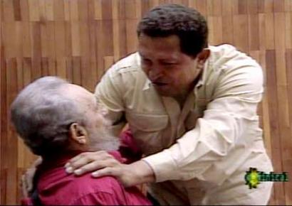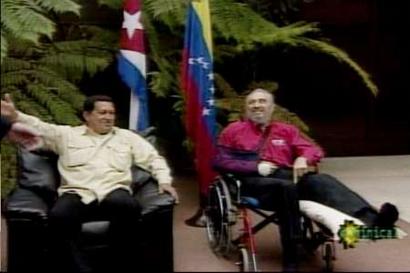 報道稱,卡斯特羅與查韋斯在上星期六晚上舉行了長達八個小時的會談——這對于一個已經78歲高齡的老人來說非常不易,考慮到他還剛剛摔了一跤,就更有點難能可貴了。電視臺的畫面顯示,卡斯特羅坐在輪椅上,腿打了石膏,胳膊也用吊帶吊在脖子上。此前,卡斯特羅在不慎摔倒后只在電視上出現(xiàn)過一次。當時電視臺只播出他胸部以上部分的鏡頭。