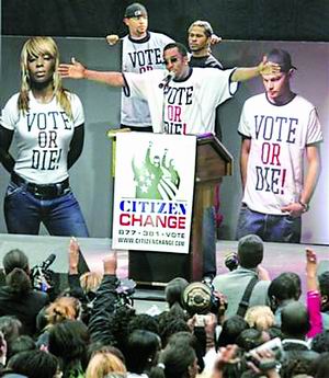 吹牛老爹曾提出了“不投票毋寧死”的口號(hào),意在號(hào)召年輕選民參加美國大選投票,珍惜投票權(quán),并建立了一個(gè)名為公民選擇的組織。吹牛老爹表示,這個(gè)組織還將繼續(xù)存在下去,參與到各種政治活動(dòng)中。他說:“這只是第一步,能讓更多的人參與到我們的組織中。我準(zhǔn)備建立一個(gè)基礎(chǔ)組織,授權(quán)給他們!贝蹬@系f:“我已經(jīng)意識(shí)到我本可以做得更好。除了攻擊布什,我其實(shí)可以用啟發(fā)的方式,引導(dǎo)美國的年輕人去思考,讓他們自己去作出決定。此前,年輕選民都不太關(guān)心總統(tǒng)選舉之事,但現(xiàn)在我們把這種情況稍微扭轉(zhuǎn)過來,我們的努力獲得了回報(bào)!