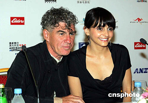 十一月九日,著名澳洲電影攝影師杜可風(fēng)(左)與澳大利亞影星皮亞·米蘭達(dá),在上海為十日晚開幕的澳大利亞電影節(jié)做推廣工作。