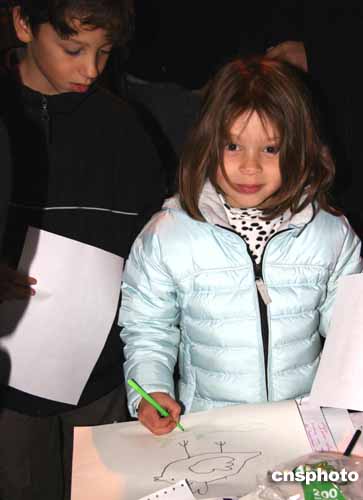 4歲女童將一張自己畫的和平鴿獻(xiàn)給阿拉法特。作者:鐘誠(chéng)