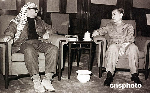資料照片:周恩來(lái)會(huì)見(jiàn)阿拉法特