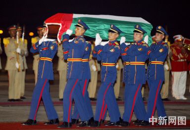 中新網(wǎng)11月12日電 法國(guó)當(dāng)?shù)貢r(shí)間11日下午6點(diǎn),在巴黎軍用機(jī)場(chǎng)舉行簡(jiǎn)單遺體告別儀式后,阿拉法特的遺體已經(jīng)由法國(guó)軍方專機(jī)運(yùn)抵埃及首都開(kāi)羅。