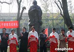 香港知名人士湯恩佳向蘇州文廟捐贈孔子銅像