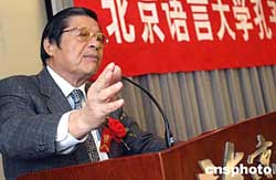 “孔子與世界文化”學術研討會同時也在該校舉辦。圖為湯恩佳先生在研討會上講話。作者:張勤