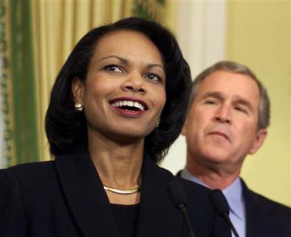2001年布什就任總統(tǒng)后,賴斯出任國家安全事務(wù)助理一職,成為布什的親信。美國媒體最近推測稱,賴斯如果不當(dāng)國務(wù)卿,她甚至有希望接替拉姆斯菲爾德成為美國歷史上第一位女國防部長。(來源:新華網(wǎng),作者:萬宏)